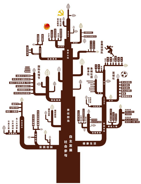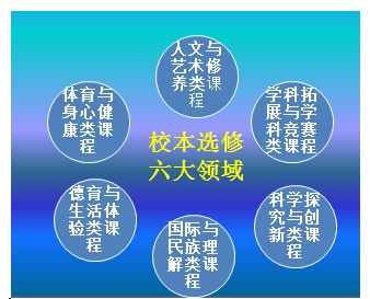 力求體現(xiàn)學(xué)校辦學(xué)特色和學(xué)生發(fā)展需求,強(qiáng)調(diào)豐富、多元、高選擇性。從學(xué)科拓展與競(jìng)賽、科學(xué)探究與創(chuàng)新、人文與藝術(shù)修養(yǎng)、國(guó)際與民族理解和體藝與身心健康五方面建構(gòu)課程,五類(lèi)選修課程互為聯(lián)系、互相補(bǔ)充,形成了既注重個(gè)性特長(zhǎng)、又注重全面和諧發(fā)展的校本課程體系,助推學(xué)生全面而有個(gè)性的成長(zhǎng)。校本課程的開(kāi)發(fā)和實(shí)施在量與質(zhì)、自在與自覺(jué)、特色化與精品化等方面有突破性的發(fā)展。初中還開(kāi)創(chuàng)了由學(xué)生開(kāi)設(shè)選修課、聘請(qǐng)教師當(dāng)助教的形式,教師和學(xué)生角色互換,不僅收獲更多情感,而且培養(yǎng)了客觀、公正的科學(xué)態(tài)度和極強(qiáng)的領(lǐng)導(dǎo)力、合作力。