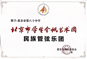 在學(xué)?!耙蝗艘惶斓?,一木一自然,讓每一個(gè)生命因教育而精彩”的辦學(xué)思想指引下,基于八十中學(xué)三級(jí)立體課程,北京市第八十中學(xué)民族管弦樂(lè)團(tuán)于2014年9月成立,多年連續(xù)榮獲市區(qū)級(jí)展演金獎(jiǎng)。經(jīng)過(guò)六年的磨練,2021年4月被市教委認(rèn)定為金帆民族管弦樂(lè)團(tuán),作為目前朝陽(yáng)區(qū)唯一一支中學(xué)金帆民樂(lè)團(tuán),八十中學(xué)金帆民樂(lè)團(tuán)有責(zé)任有義務(wù)繼續(xù)擴(kuò)大影響力,繼續(xù)立足于學(xué)生的全面發(fā)展揚(yáng)帆起航!