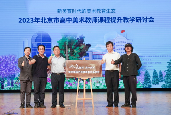 2023年6月,人美社國(guó)家教材“全國(guó)高中現(xiàn)代媒體藝術(shù)模塊教學(xué)基地?!鳖C牌儀式