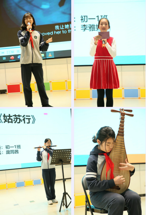 藝術(shù)沙龍的收官之日,傳統(tǒng)與現(xiàn)代交相輝映。古色古香的琵琶、悠遠(yuǎn)綿長(zhǎng)的竹笛、韻味十足的古箏,讓同學(xué)們?cè)趥鹘y(tǒng)民族樂(lè)器的美妙旋律中感受中華文化的深厚底蘊(yùn)。此外,同學(xué)們還帶來(lái)了精彩的語(yǔ)言藝術(shù)表演,詩(shī)歌朗誦聲音洪亮又富有感染力;英文配音《后媽茶話會(huì)》幽默風(fēng)趣,惹得觀眾捧腹大笑;快板表演《三打白骨精》結(jié)尾處給大家留下了神秘的懸念;壓軸節(jié)目由初星合唱團(tuán)帶來(lái)英文歌曲《Whisper》,輕柔又富有神秘力量,為整個(gè)藝術(shù)沙龍畫(huà)上了圓滿的句點(diǎn)。