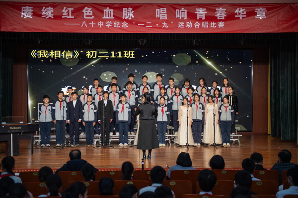 比賽在全體師生齊聲高唱校歌《我們夢想一定實現(xiàn)》的嘹亮歌聲中圓滿落下帷幕。此次合唱比賽的成功舉辦,不僅有效提升了同學們的藝術(shù)素養(yǎng)與團隊協(xié)作能力,更讓紅色基因在婉轉(zhuǎn)歌聲中代代相傳、生生不息。少年意氣風發(fā),青春正當其時。愿八十中的學子們帶著本次比賽的熱血與感悟,將紅色信仰深深根植于心田,以青春之我、奮斗之我,不負時代、不負韶華,在強國建設(shè)、民族復(fù)興的偉大征程中,書寫屬于少年一代的華彩篇章!